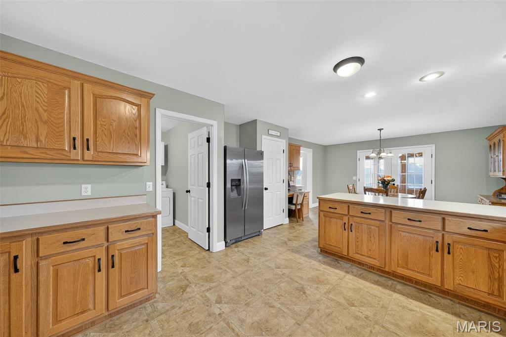 Welcome to your private retreat in Lincoln County! This beautifully maintained ranch home sits on 3 sprawling acres, offering peace, privacy, and room to roam. Featuring 3 spacious bedrooms and 2 full bathrooms on the main level, this home is ideal for comfortable, single-level living. The open-concept layout boasts a large living room with abundant natural light and woodburning fireplace, a functional kitchen with ample cabinet space, and a dining area perfect for everyday meals or entertaining guests and you'll love the convenience of the main floor laundry. The primary suite includes a full bath and generous closet space. Downstairs, the finished walk-out basement adds incredible versatility to the home, complete with a full bathroom—ideal for a guest suite, home office, recreation space, or in-law setup. Step outside from the basement onto the expansive backyard and enjoy uninterrupted views of nature. This property offers endless possibilities. Don't miss this rare opportunity to own a well-kept ranch on acreage in the heart of Lincoln County!