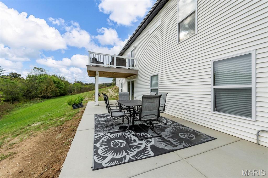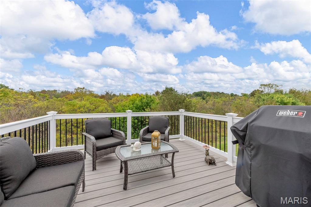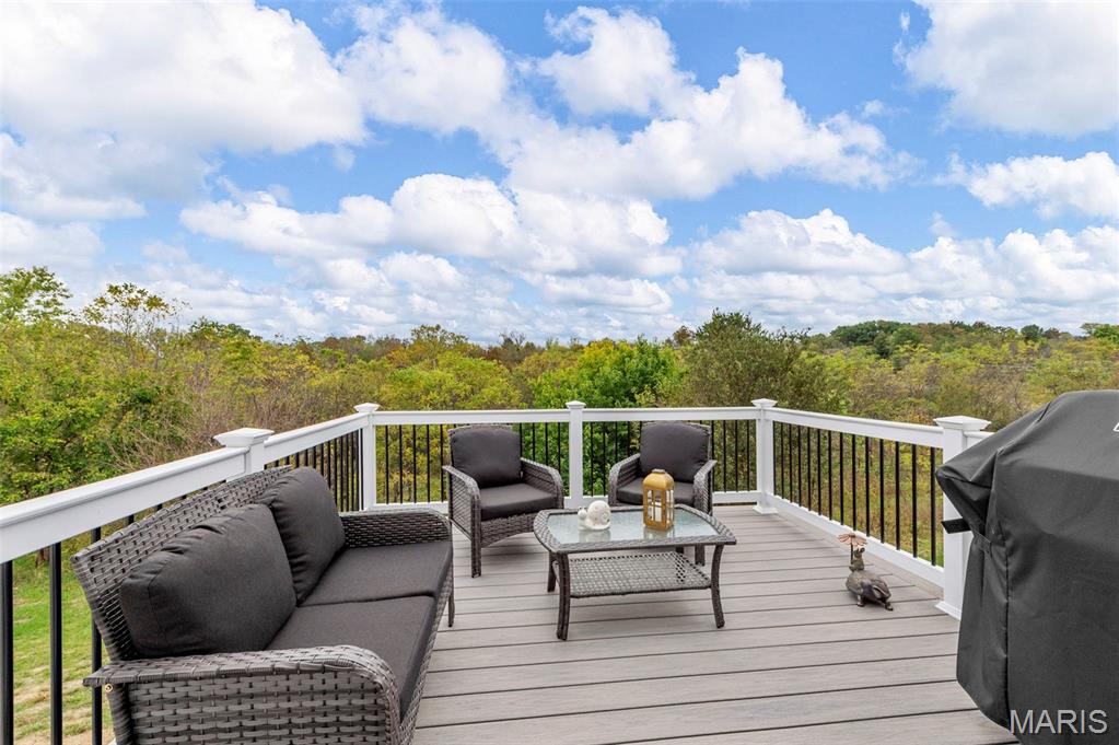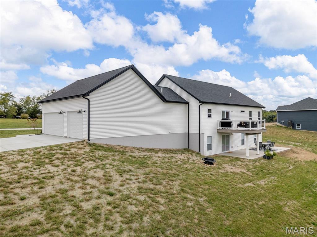 The seller hates to leave this gorgeous, custom, almost new home, with even more upgrades since just purchased In June 2025! This home has everything you are looking for from the gorgeous curb appeal with $11K just added in landscaping, to the welcoming open floor plan to the stunning kitchen with Island and quartz countertops! The kitchen offers 42" shaker cabinets w/crown molding, soft close and beautiful upgraded pulls, lg pantry, black stainless appliances! Plus refrigerator, washer & dryer that were added after closing ($5780) will stay! Walk out the dining area to the newly installed Wolf Composite deck ($22K+) overlooking the PRIVATE 2 acre lot! And wait till you see the mudroom w/built in seating/coat hooks/storage and so much space for your extra refrigerator or freezer (could even be used an office!), plus separate laundry room, and closet! Spacious primary suite offers a huge walk-in closet plus luxury bath and awesome marble walk-in shower w/custom rain head & transom window for addl light! Large counter - currently single sink, but roughed in for 2nd sink in future if desired, owner just preferred one sink. Two addl bedrooms and full bath complete the main level. The walkout lower level is wide open, w/huge newly expanded patio, ($2800) perfect for entertaining, w/firepit and private view of woods! Set up well for future finish with three egress windows, rough in bath, and easy to add a family room and 4th bdrm as needed! Another great feature includes 48' x 6‘ concrete safe room with floor drain, electric and vent rough in! Water softener, also added after closing ($5000) will stay! All this with a side entry oversized, fully insulated and drywalled 3 car garage! Addl features include Luxury VInyl thoughout main living areas, added Hunter Douglas Blinds and window tint (almost $5K), custom trim & doors, extensive insulation, Air to Air Heat Pump, more!