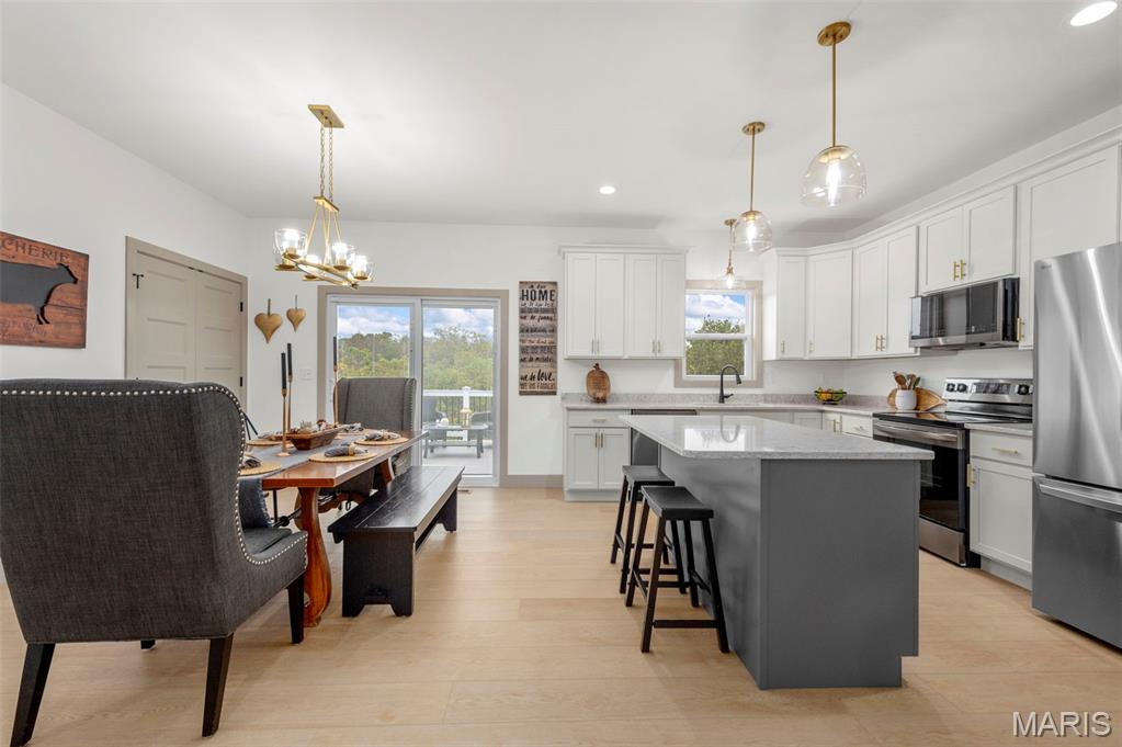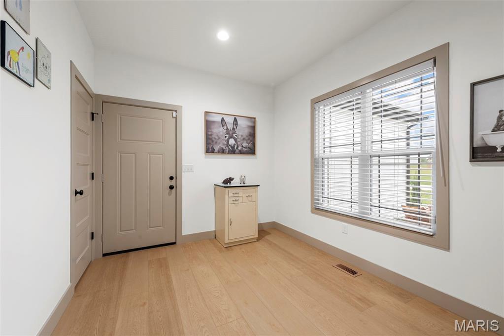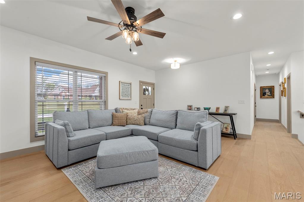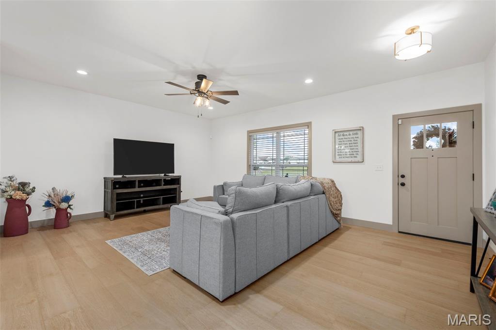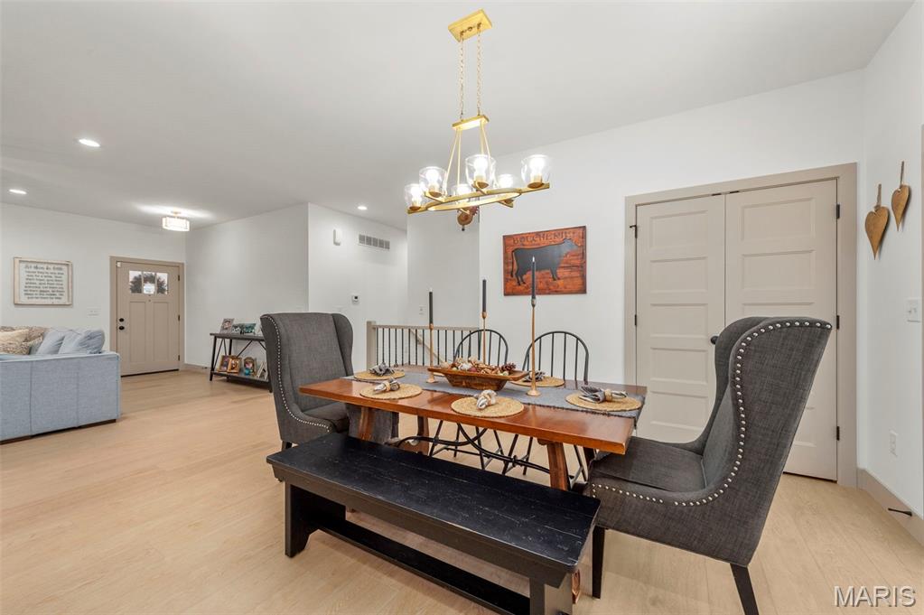 The seller hates to leave this gorgeous, custom, almost new home, with even more upgrades since just purchased In June 2025! This home has everything you are looking for from the gorgeous curb appeal with $11K just added in landscaping, to the welcoming open floor plan to the stunning kitchen with Island and quartz countertops! The kitchen offers 42" shaker cabinets w/crown molding, soft close and beautiful upgraded pulls, lg pantry, black stainless appliances! Plus refrigerator, washer & dryer that were added after closing ($5780) will stay! Walk out the dining area to the newly installed Wolf Composite deck ($22K+) overlooking the PRIVATE 2 acre lot! And wait till you see the mudroom w/built in seating/coat hooks/storage and so much space for your extra refrigerator or freezer (could even be used an office!), plus separate laundry room, and closet! Spacious primary suite offers a huge walk-in closet plus luxury bath and awesome marble walk-in shower w/custom rain head & transom window for addl light! Large counter - currently single sink, but roughed in for 2nd sink in future if desired, owner just preferred one sink. Two addl bedrooms and full bath complete the main level. The walkout lower level is wide open, w/huge newly expanded patio, ($2800) perfect for entertaining, w/firepit and private view of woods! Set up well for future finish with three egress windows, rough in bath, and easy to add a family room and 4th bdrm as needed! Another great feature includes 48' x 6‘ concrete safe room with floor drain, electric and vent rough in! Water softener, also added after closing ($5000) will stay! All this with a side entry oversized, fully insulated and drywalled 3 car garage! Addl features include Luxury VInyl thoughout main living areas, added Hunter Douglas Blinds and window tint (almost $5K), custom trim & doors, extensive insulation, Air to Air Heat Pump, more!