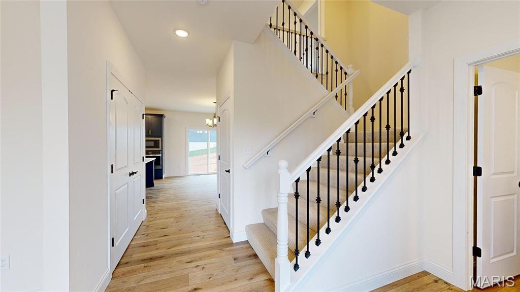 The Hickory by Houston Homes, LLC. 2,394 sq. ft. 2-story w 3 BD, 2.5 BA, 2-car garage w. 3rd tandem bay. Overall 36'-10" depth at one of two bays. Main floor foyer, coat closet, flex room, kitchen w. walk-in pantry, breakfast café, great room, powder room. Upper level owner's suite w. walk-in closet, private bath w. 5' deluxe tub/shower combo w. seat, elongated toilet, linen closet, adult height vanity w. cultured marble top. 2nd floor laundry, loft (option: convert to Bed#4). Bedrooms 2 & 3 w. walk-in closets & shared hall bath. Stainless steel kitchen appliances, wood kitchen cabinetry w. soft close cabinet doors & drawers, granite countertops, garbage disposal. R-38 ceiling & R-13 wall insulation, Pella windows & patio doors. 8' reinforced foundation walls, 10-year anti-leak foundation warranty, sump pit & pump, lighting at garage, foyer & front porch, smoke detectors, architectural shingles, PestSheild, low maintenance vinyl siding, full sod yard & professional landscape package.