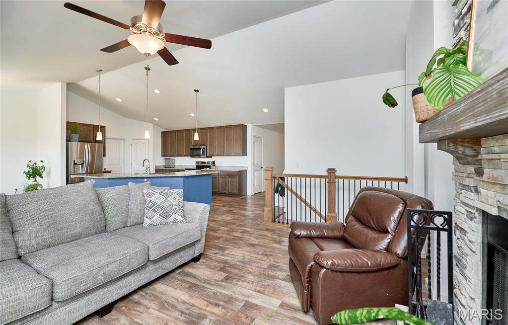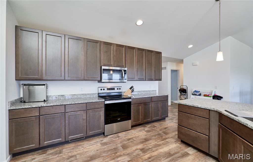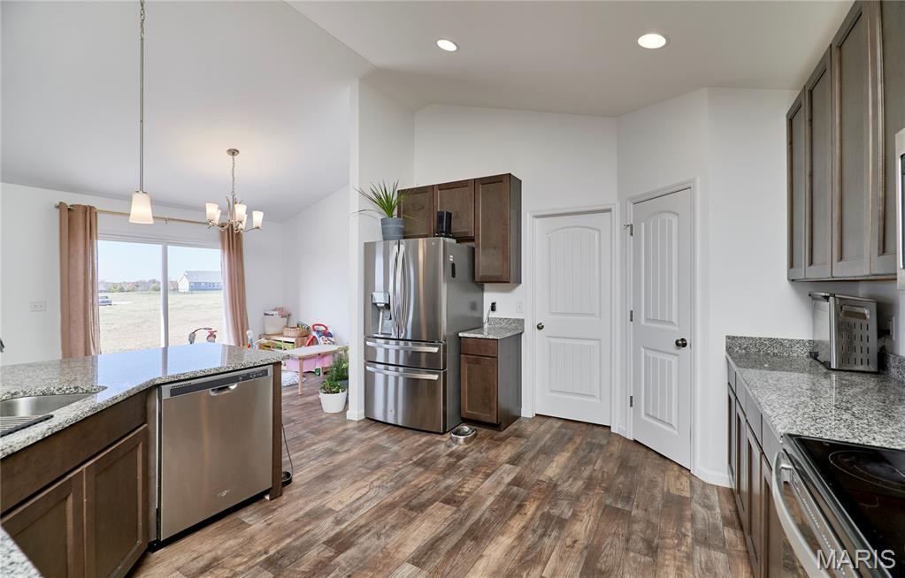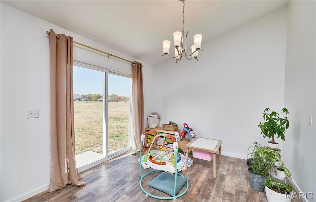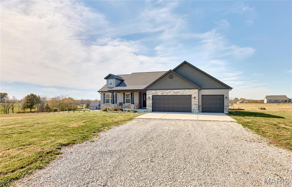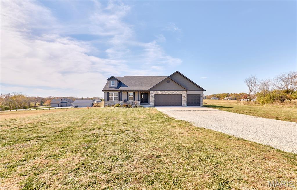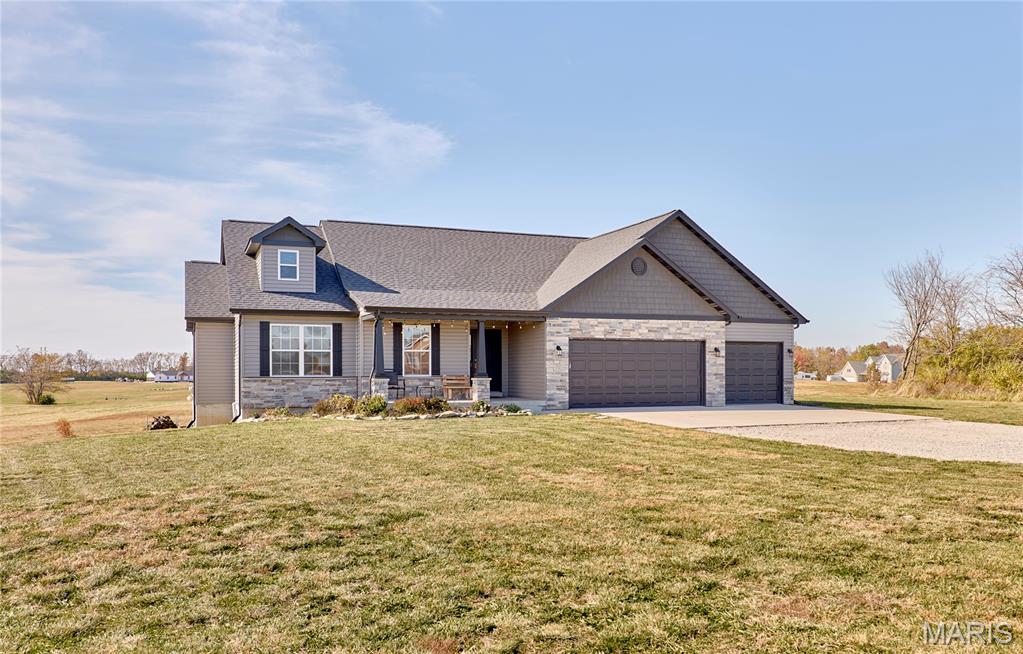 Beautiful ranch-style house located in Whiteside Estates. Sits on 2.51 acres, quick access to Highway 61, and the subdivision backs up to a wildlife conservation area. The 3-bedroom 2-bath open concept floor plan includes a foyer into the great room with vaulted ceilings, an oversized kitchen island, and a good-sized pantry. A stone wood-burning fireplace is a bonus in the great room. The kitchen includes storm color shaker cabinets, granite countertops, and stainless steel appliances in addition to the main floor laundry. The unfinished basement has a rough-in bathroom, sump pump, and egress window that allows endless possibilities. Oversized 3-car garage gives ample storage with a long driveway for extra parking or play space for kids.